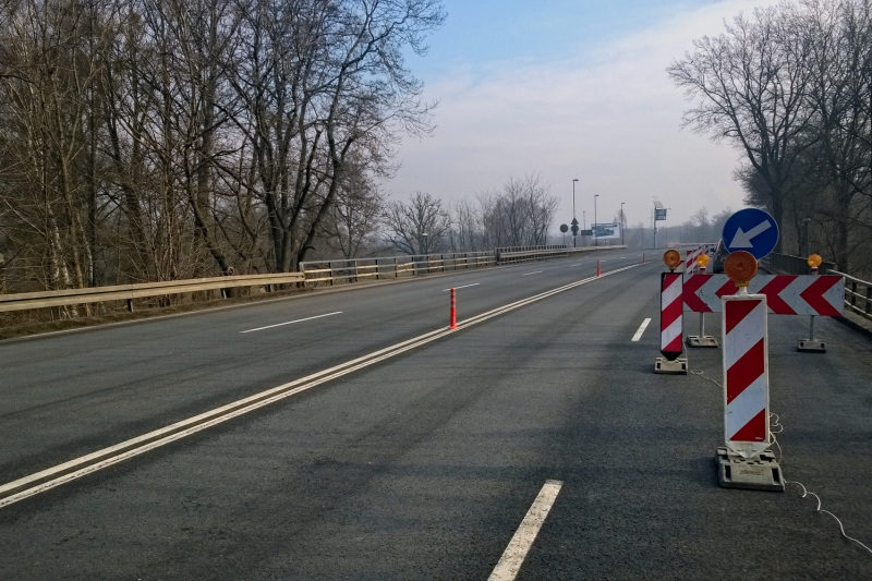 Oznakowanie zawężenia jezdni na wiadukcie zostało wprowadzone w dniu 20.02.2015r.
