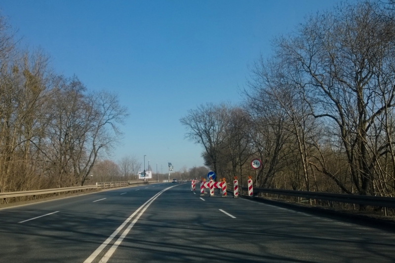 Oznakowanie zawężenia jezdni na wiadukcie zostało wprowadzone w dniu 20.02.2015r.