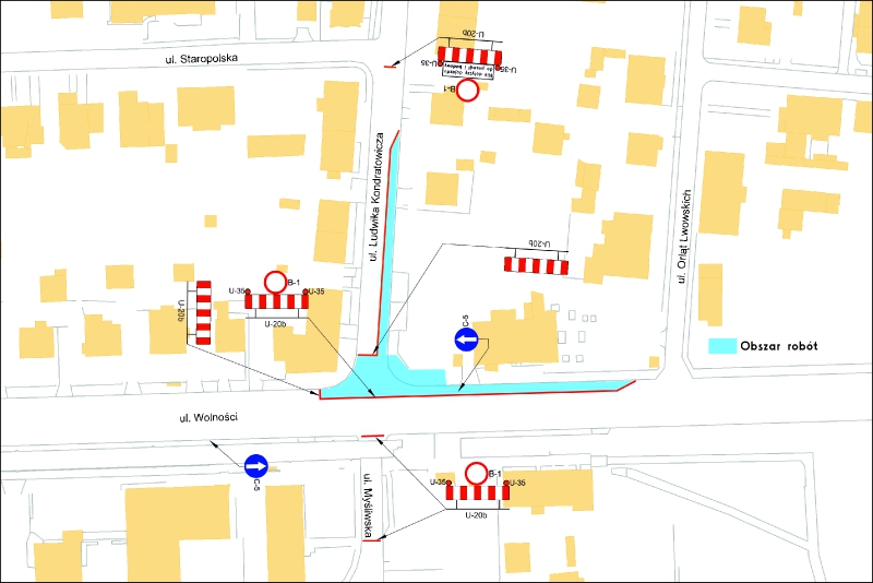 z ul. Kondratowicza zachodzi konieczność czasowego zamknięcia ul. Kondratowicza w celu usunięcia awarii w/w sieci.