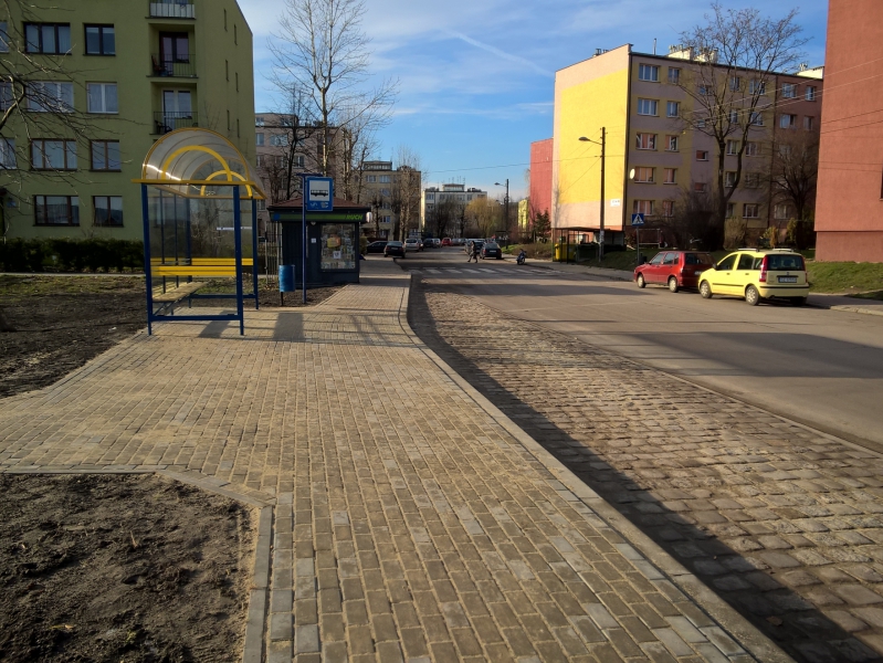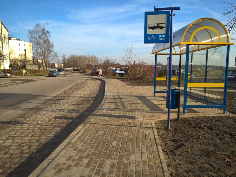 Wykonano pełnowymiarową zatokę z kostki granitowej oraz chodnik pozwalający zarówno na komunikację, jak również na bezpieczne oczekiwanie podróżnych na autobusy. Dodatkowo przystanek przy zatoce wyposażono w nową wiatę dla pasażerów.