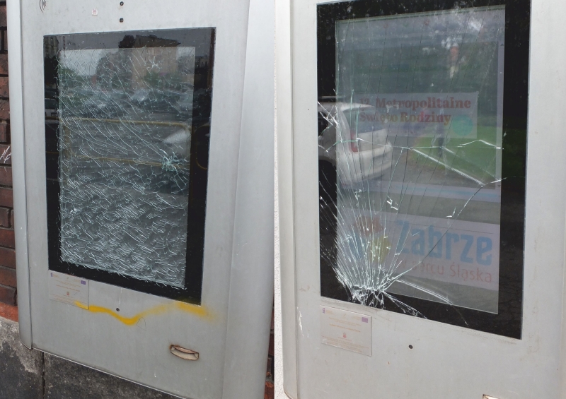 W ostatnim czasie odnotowujemy plagę aktów wandalizmu skierowanych przeciwko urządzeniom Infobox. Dzięki tym urządzeniom możemy dowiedzieć się więcej o życiu kulturalnym miasta, wydarzeniach sportowych jak i innych imprezach okolicznościowych, za darmo skorzystać z internetu. Niestety Infobox’y padają ofiarą ludzkiej głupoty i są coraz częściej niszczone. Zwróćmy uwagę, że jest to własność nasza, wspólna, mieszkańców Zabrza. Naprawa jednego urządzenia to koszt w granicach 6000zł . Jeżeli jesteś świadkiem takiego zajścia zgłoś ten fakt organom ścigania. NIE PRZECHODŹ OBOJĘTNIE WOBEC AKTÓW WANDALIZMU!